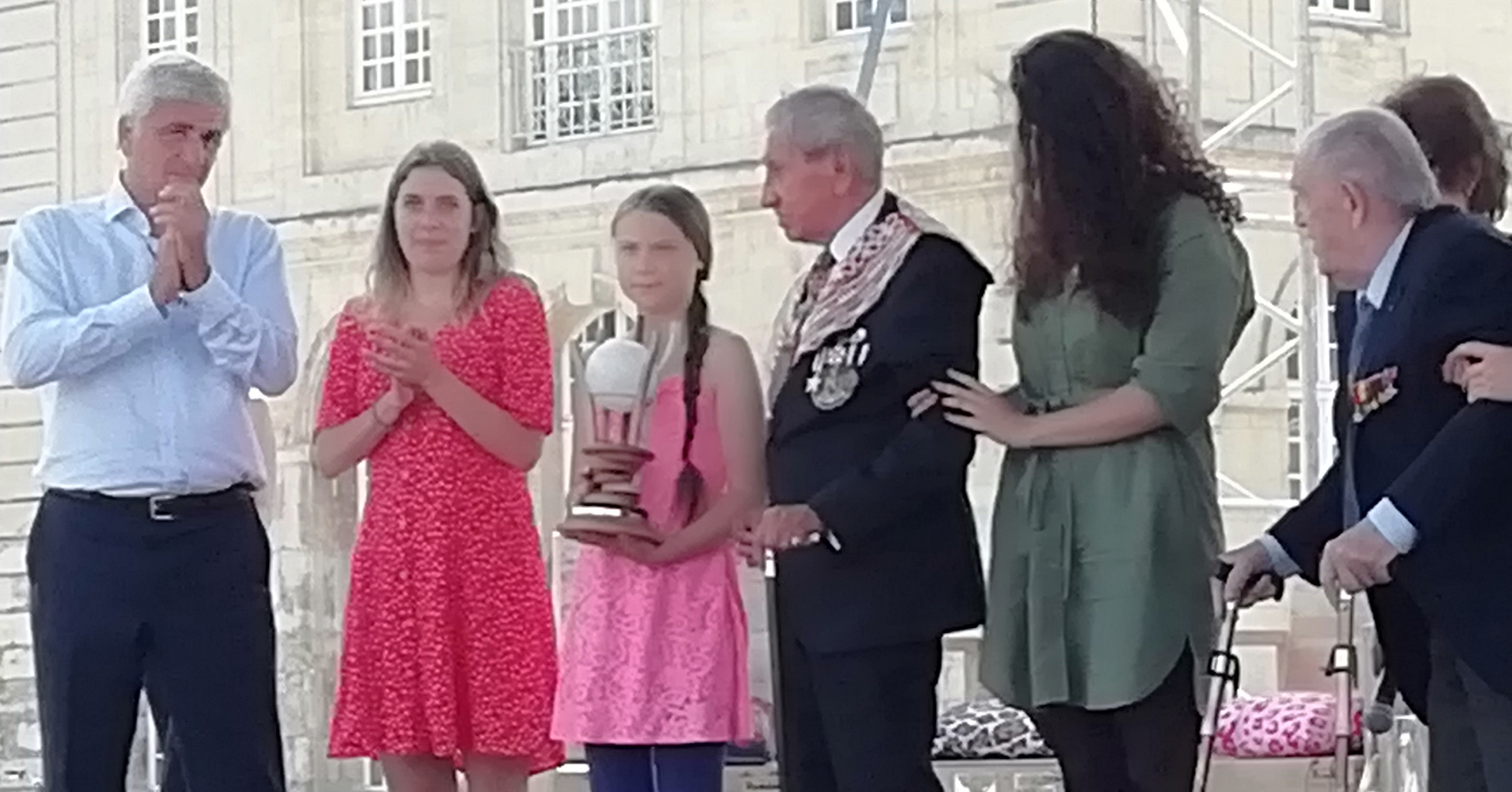 le Président de la région Normandie, Hervé Morin, qui remettait le Prix Liberté à Greta Thunberg, souligne ce qui est «Probablement devant nous l’un des plus grands défis de l’humanité depuis son existence, celui de ne pas créer les conditions de sa propre destruction.»