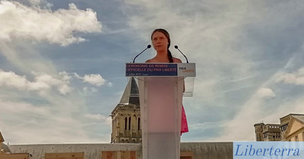 Greta Thunberg, première lauréate du Prix Liberté, initié par la Région Normandie, qui est sous l’impulsion de son Président Hervé Morin , le fer de lance du « Manifeste Normandie pour la Paix », signé en présence du Dr Denis Mukwege, Prix Nobel de la Paix 2018, durant le Forum Mondial Normandie pour la Paix début juin.