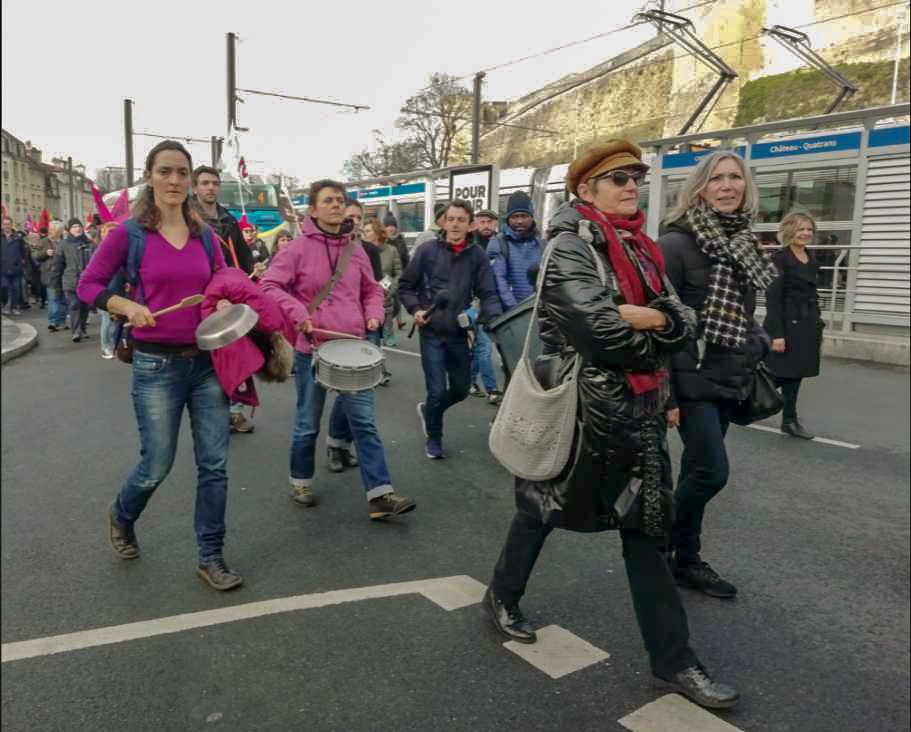 Avocats, enseignants, soignants, étudiants, lycéens, artistes, précaires, chômeurs, cheminots, écologistes, retraités, un peuple dans la rue par ce nous, nous tous ensemble.