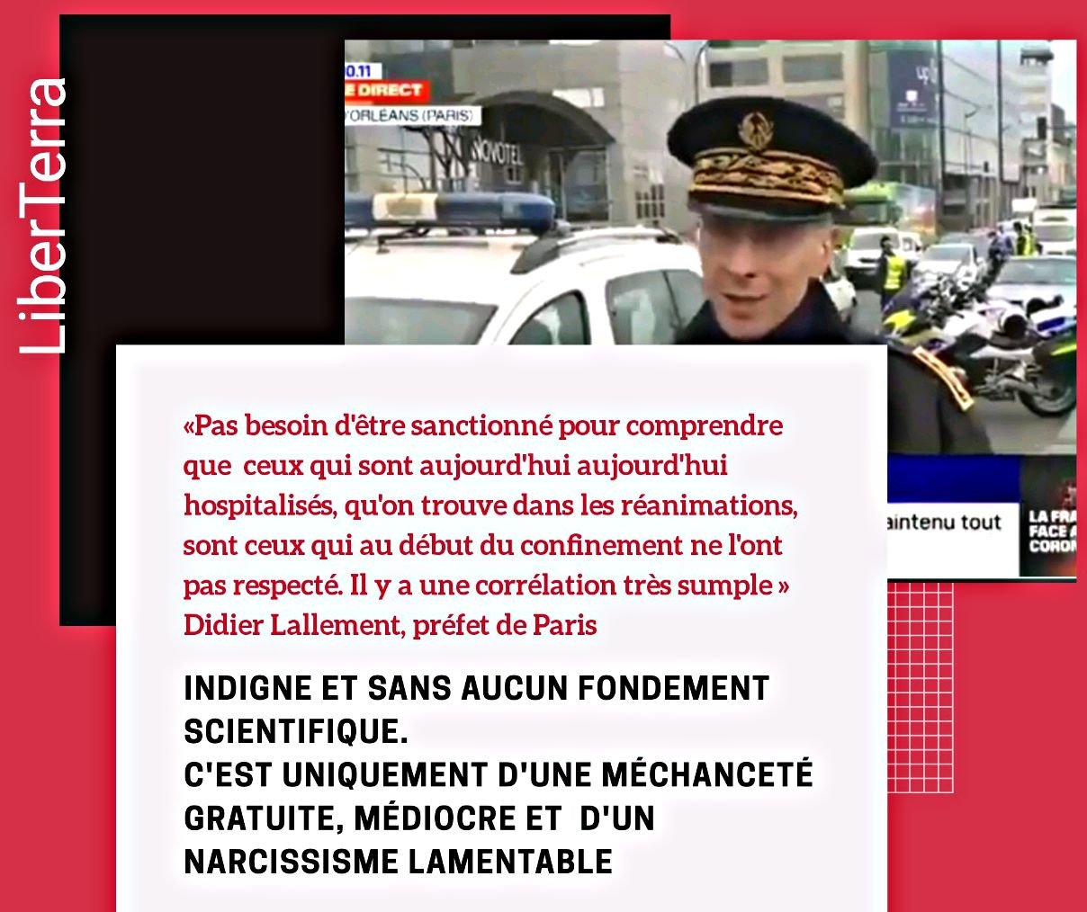 Propos de Didier Lallement au micro de BFMTV, le 3 avril porte d’Orléans à Paris lors d’une opération de police pour empêcher les départs en vacances de printemps qui débutent en région parisienne et qui sont interdits par les mesures de confinement.