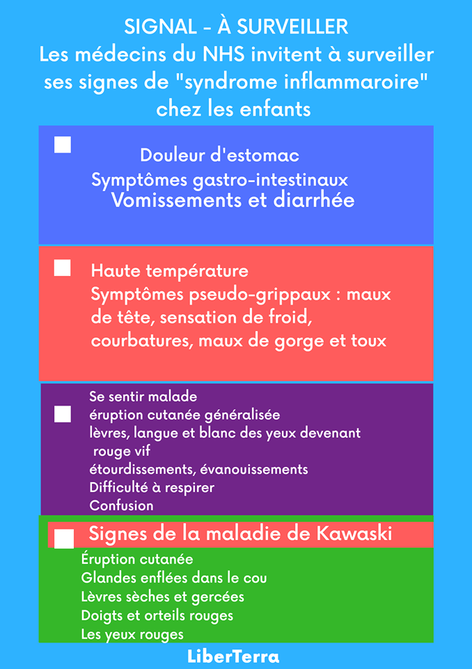 NHS, très inquiets, a lancé ce week-end une alerte urgente notamment aux médecins du Royaume-Uni. La gravité de cette maladie liée au Covid-19 provoque un syndrome inflammatoire proche de la maladie de Kawasaki, c’est une maladie infantile rare des vaisseaux sanguins.