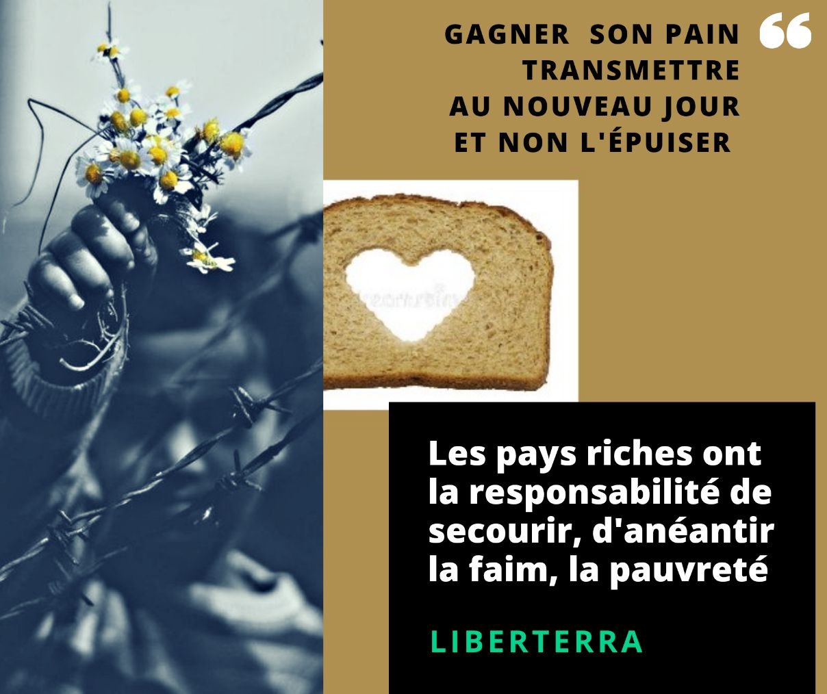 Mais fabriqué le pain n’est pas à la sueur du mensonge, d’un esclavage moderne, d’une destruction lente ; il est à la fertilité.