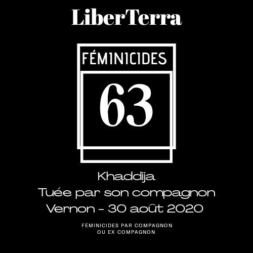France – 1er janvier- 30 août 2020 – 63 féminicides
