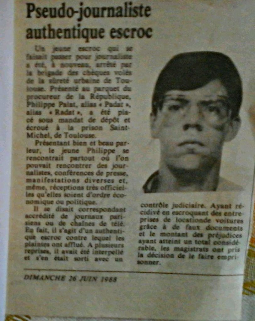 Il fera l’objet d’un article conséquent dans la Dépêche du Midi avec sa photo en illustration en tant que faussaire et escroc déjà expérimenté. Il a alors moins de 25 ans !