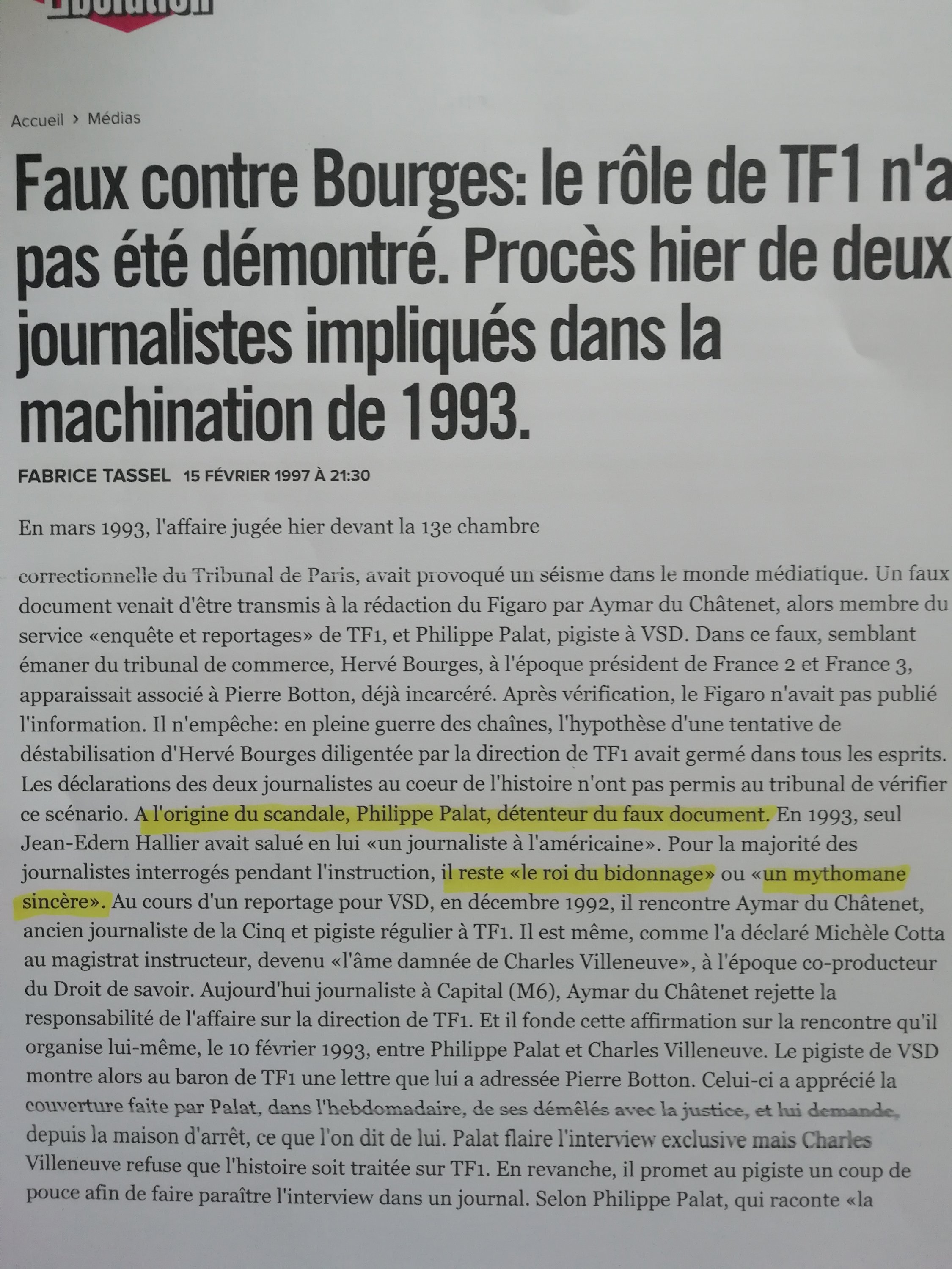 1993 – Faussaire et escroc, il fabrique un faux mettant en cause une personnalité et n’hésite pas à vouloir faire condamner un innocent. Il fera de nouveau l’objet d’articles dans la presse révélant son nouvel exploit.
