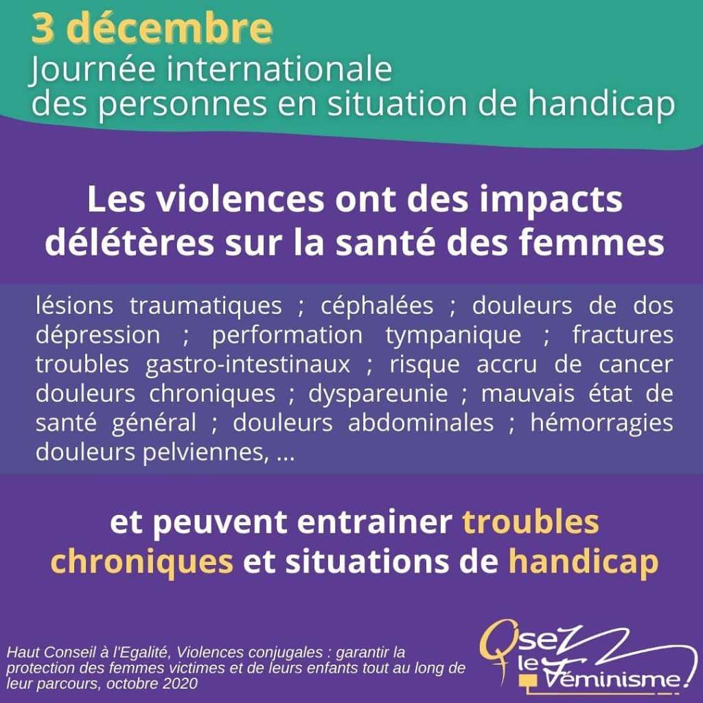 L’OMS alerte sur le fait que les violences subies par les victimes mettent gravement leur santé en danger et augmentent le risque de dépression, de tentatives de suicide ainsi que d’infections sexuellement transmissibles, car de nombreux prédateurs adoptent des comportements à risque, sans aucun respect pour leur partenaire intime. Ces violences exposent également les victimes à un risque accru de maladies graves, telles que AVC, cancers et autres pathologies sévères.