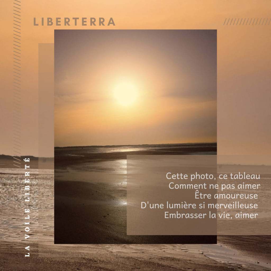 Un charbon bleu et un brin de blé pour couronner la rose au jardin , faire ce bouquet de fleurs libres des dunes et d’un sourire, une mère et son enfant, le soir et le soleil leur donnant ce manteau fragile pour consoler le chagrin : une voile liberté.