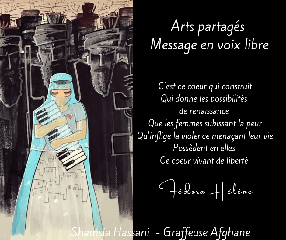 Arts partagés et solidarité – Se donner la main, se soutenir mutuellement pour ne plus vivre ces larmes brûlantes coulant sans fin au vent froid qui se soulève quand les hommes violents effacent toute paix et liberté.