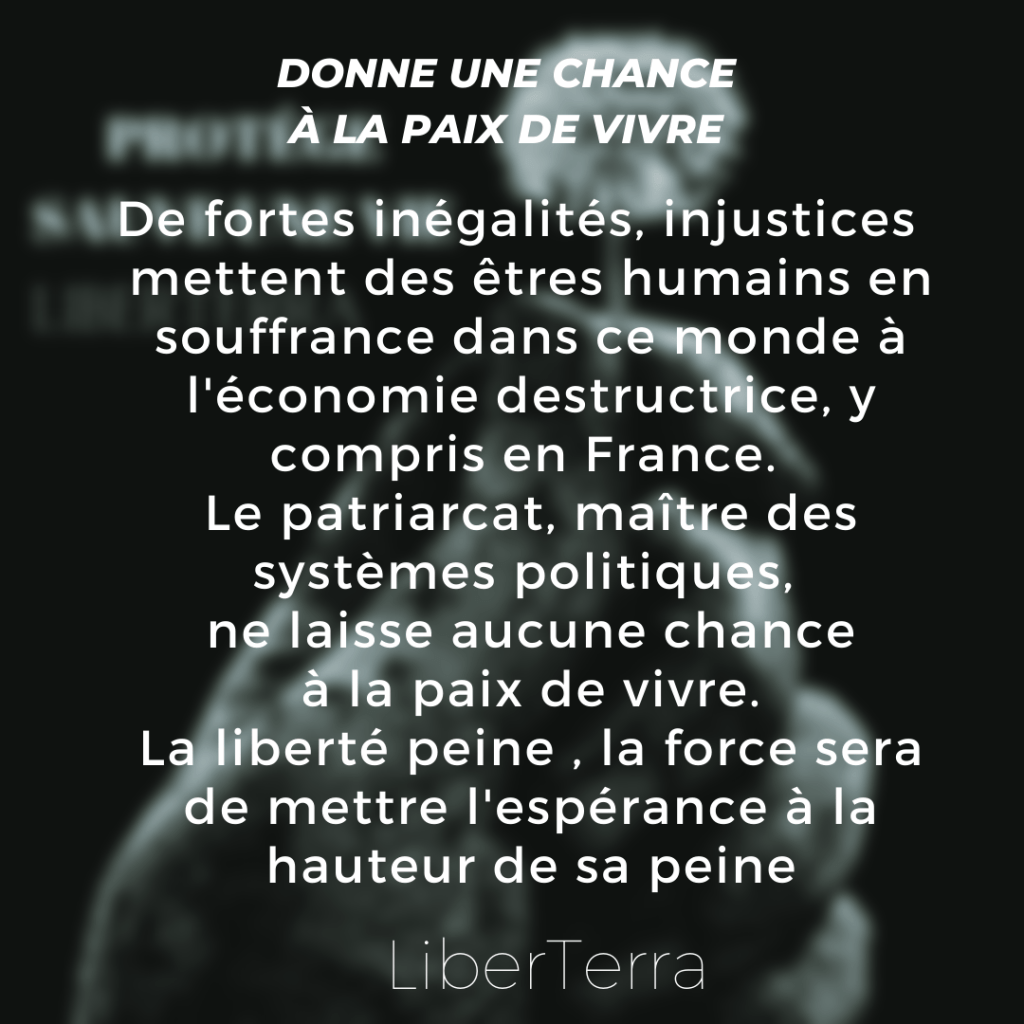 Les violences faites aux femmes et aux enfants sont le chaos de nos systèmes capables de détruire la vie. Comment des hommes en temps de paix défoulent leurs pulsions de violences sur ceux qui partagent leur vie, qui leur offre de l’amour, qui sont cette chance pour lui, cette chance d’avancer et ils choisissent conscients de leurs actes de détruire l’autre car ils pensent que la vie de l’autre qui aime, empêche leur existence qui n’aime pas, d’exister !