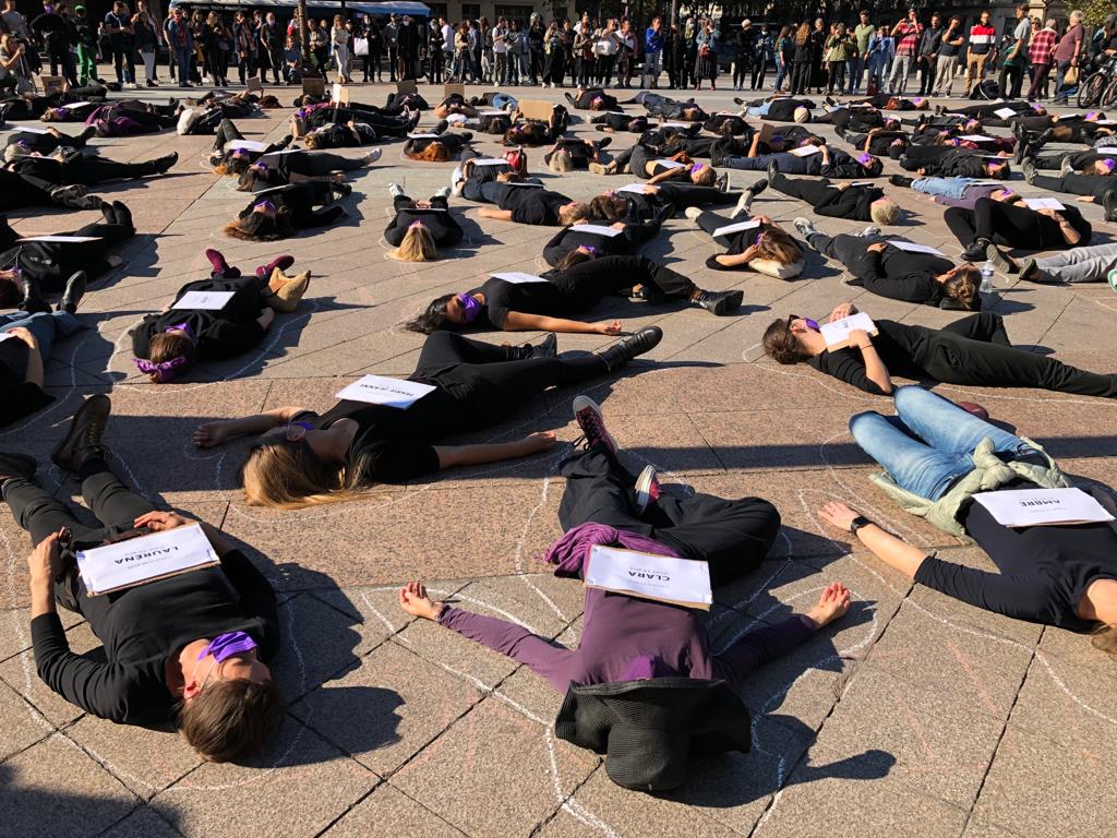 Die-in : En femmage aux femmes victimes de féminicides et à leurs enfants