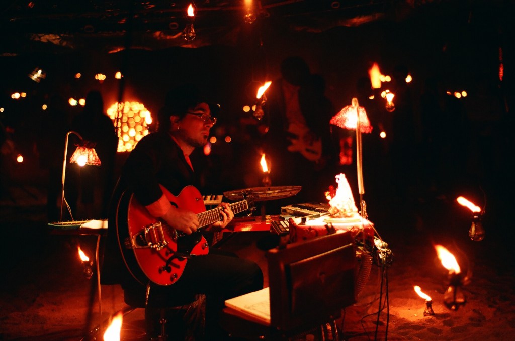 Des cercles de feu, des bougies formant un astre de lumière – grandiose, immense, la magie s’opère et s’articulent des automates de métal déambulant entre le feu et l’eau en une fontaine miraculeuse, quand plus loin apparaît un cœur de feu, le nôtre sans aucun doute, celui de notre humanité que l’art rend visible.