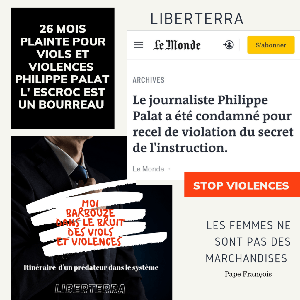 Cela fait des années que la justice sait très bien qui est Philippe Palat et les violences qu’il commet . Philippe Palat, journaliste barbouze, escroc et faussaire multiricidiviste . Cet escroc est un bourreau.