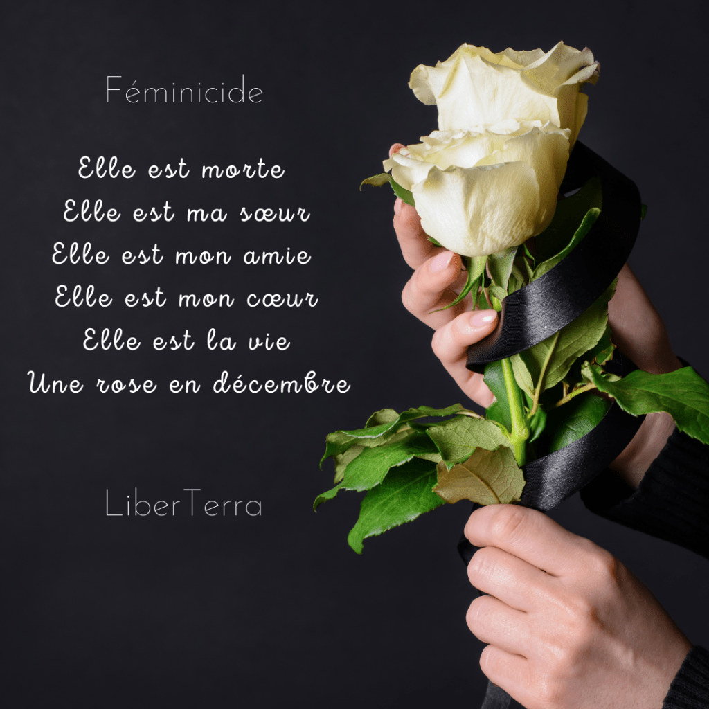 La violence contre des femmes de paix ne voulant que protéger la beauté de la vie – une vie forte, belle et merveilleuse. Puis, le langage patriarcal se prononce contre cette mère retenant ses larmes et les changeant en un sourire, en une espérance pour protéger ses enfants, pour dire à la vie combien elle l’aime. Le patriarcat, lui, regarde une femme tombée à terre, sans plus de souffle, elle qui a tout donné pour elle, la vie – elle est morte tuée par un homme de violence.