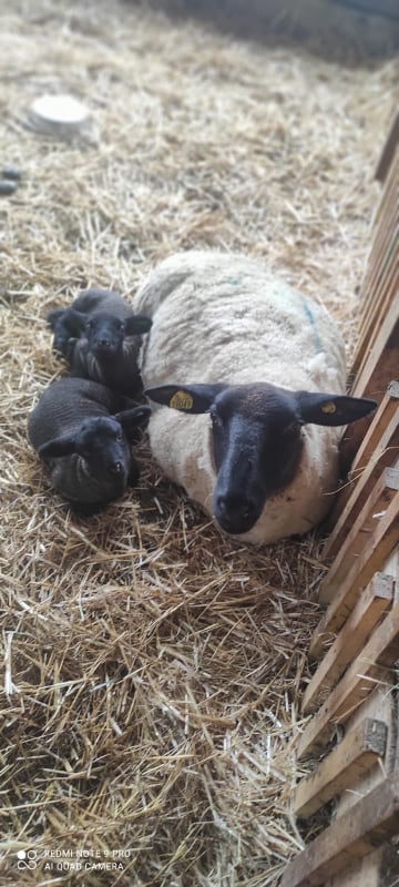La naissance de triplés, il y a seulement trois jours ! Aurélie Mournaud apporte les meilleurs soins à ses animaux et tient à leur offrir une belle vie. Les jeunes agneaux reçoivent le lait de leur mère, profitent de l’herbe bio des pâturages et grandissent sans souci dans la bergerie. Et, tout cela est possible par l’affection que l’éleveuse apporte à ses animaux.