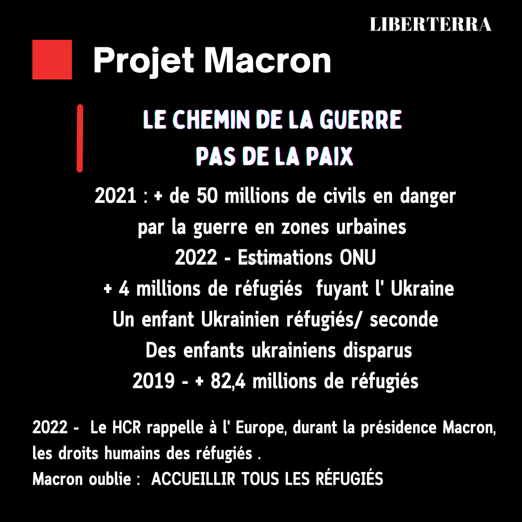 Le HCR a annoncé qu’il y a 10 millions d’Ukrainiens déplacés, réfugiés fuyant la ruine qu’est la guerre. Et, avant que ces pleurs nous effondrent, les lobbies, comme Total, les ventes d’armes comme celles réalisées par Emmanuel Macron étaient le fleuron de notre industrie, la croissance si attendue et aujourd’hui pour des millions d’enfants à travers le monde, il est la promesse d’une catastrophe alimentaire dans les prochains mois. Une insécurité alimentaire qui touche déjà l’Europe, y compris la France.