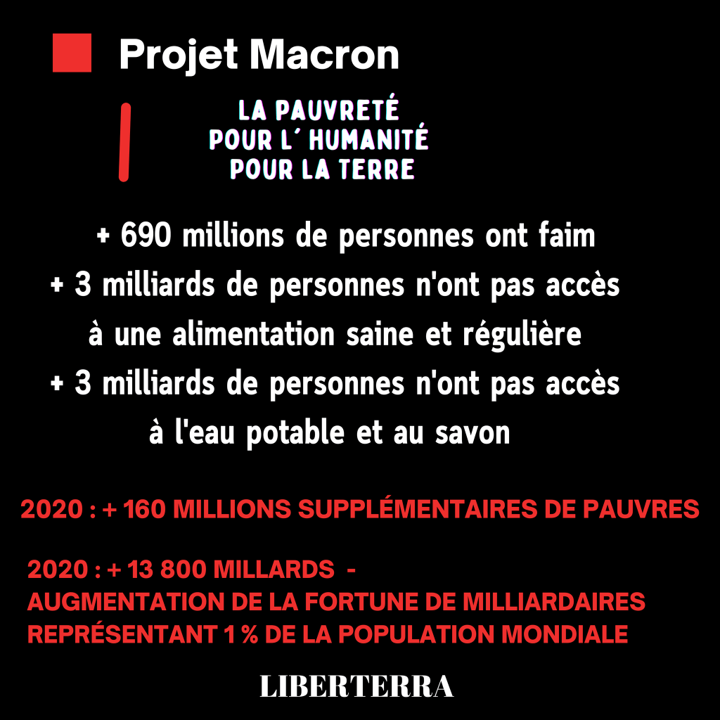 Cette folie et actuellement, Emmanuel Macron récite les alertes faites par l’ONU sur l’augmentation de la pauvreté, pendant que le système qu’il a choisi est une fabrique de pauvreté. Les politiques ne l’ont jamais anéantie, car elle est une arme puissante contre les peuples et dénoncer les famines, ce n’est pas anéantir la pauvreté. Emmanuel Macron annonçant ce qui est su depuis plusieurs années et que nombreux rapports ont dénoncé, notre monde au bord du précipice. Et, dans le même temps, Emmanuel Macron fera tout pour porter une économie destructrice à son sommet.