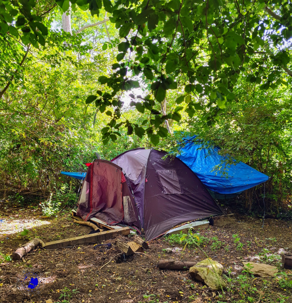 Les herbes sont coupées, le petit bois est libéré des orties et ronces, des clairières apparaissent et deviendront un lieu habité. Quelques tentes, tout est entretenu, propre, une cuisine rudimentaire, celle des bois, un espace pour partager le repas. Il ne manque que l’eau, que l’installation de sanitaires éphémères, d’une douche – cet essentiel qui représente le fondamental des droits humains. Et, plus loin, il manque des solutions de logement sur Ouistreham. Nous donnons des étoiles aux villes fleuries, nous pourrions donner des étoiles aux villes d’accueil.