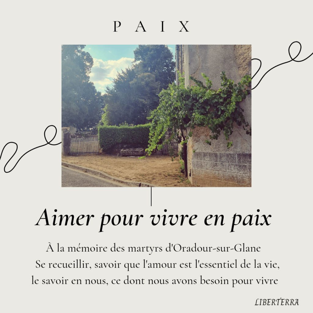 Il s’est écrit sur le mur en pierre Non – Non à l’obscurité. Les martyrs devenus anges de lumière, un rayon nous appelant à aimer, à nous recueillir, à être la sincérité pour ressentir la paix en nous , avoir confiance et avancer même si parfois le cœur serré, le chagrin est là, qu’il ne s’oublie pas à travers les chemins d’ Oradour-sur-Glane, le village en ruine par la cruauté d’hommes de violences.