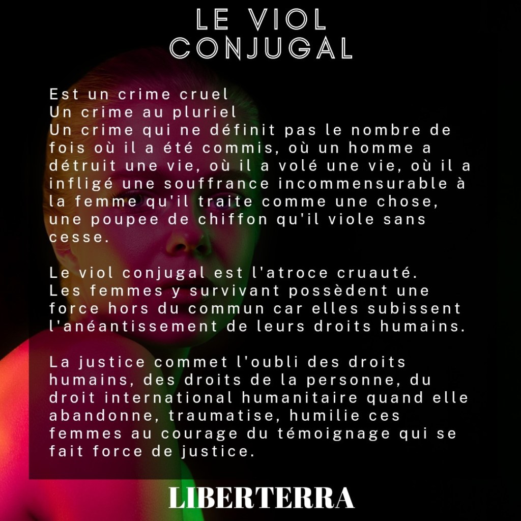 Le fléau des viols conjugaux touchent des femmes à travers le monde et un rapport de l’OMS et de l’ONU a estimé qu’il était environ 641 millions de femmes victimes de violences sexuelles commises par leur partenaire intime. (Article – le chiffre glaçant – 641 millions de femmes victimes de violences sexuelles exercées par leur partenaire – LiberTerra). Le Directeur de l’OMS avait alors déclaré, « La violence à l’égard des femmes est endémique dans tous les pays et toutes les cultures, causant des dommages à des millions de femmes et à leurs familles ». «L’incompréhensible cruauté des violences sexuelles » a exprimé l’ONU.
