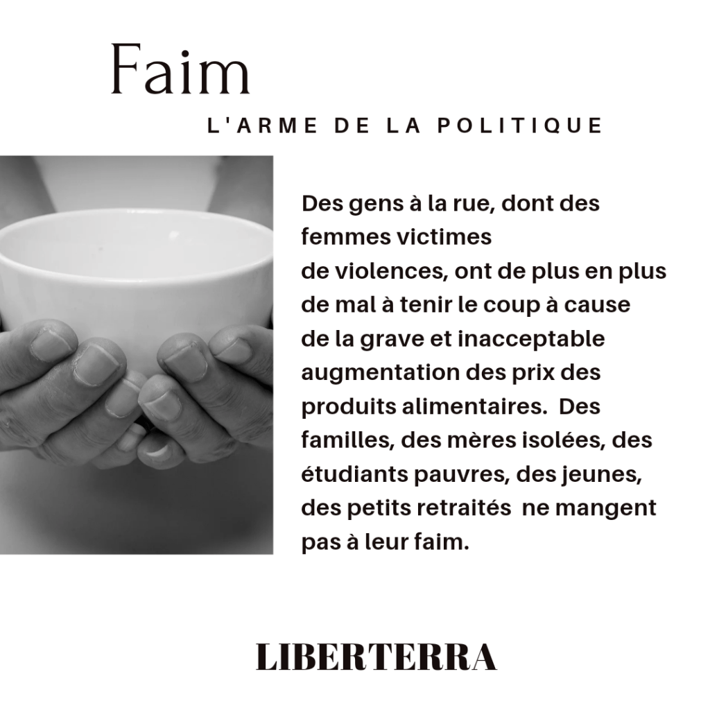 Des gens à la rue, dont des femmes victimes de violences, ont de plus en plus de mal à tenir le coup à cause de la grave et inacceptable augmentation des prix des produits alimentaires. Des familles, des mères isolées, des étudiants pauvres, des jeunes, des petits retraités ne mangent pas à leur faim.