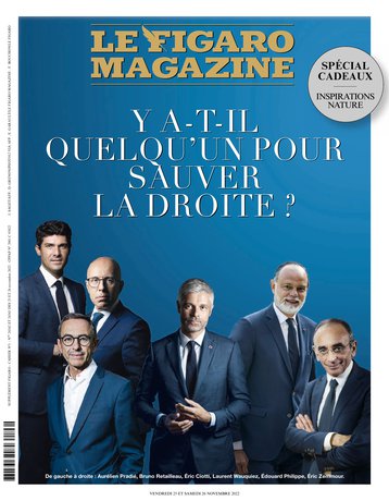 Perdure encore des chroniques patriarcales, comme dans le Figaro, et l’image de Une du Figaro Magazine sur « Y a-t-il quelqu’un pour sauver la droite » avec en photo : 6 hommes politiques et pas une femme. Une que cite le rapport.