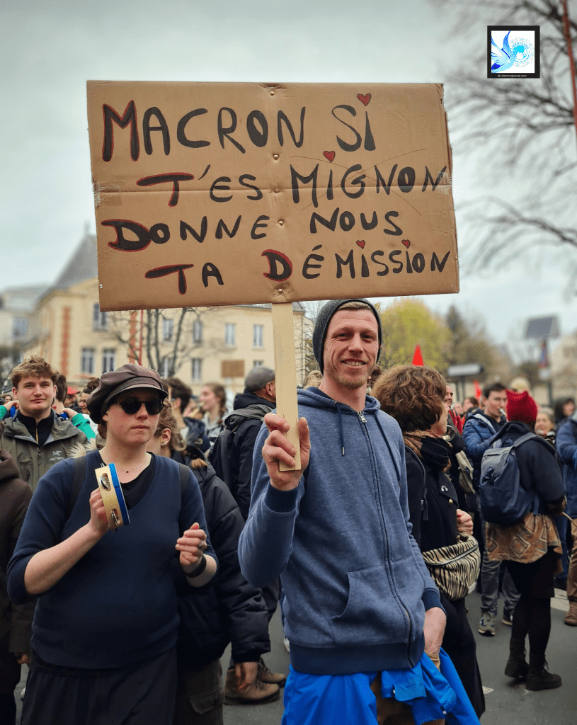 Emmanuel Macron devrait prendre le temps de faire corps avec la nature, de réfléchir en paix et d’ouvrir les yeux sur une politique de violence transformant la paix en guerre. C’est Sainte-Soline, des centaines de blessés, deux jeunes grièvement blessés, et Serge lutte toujours pour vivre.
