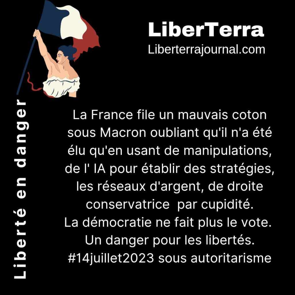 La liberté a déjà perdu une bataille et chacun de nos écrans peuvent devenir l’espion contrôlé par un Etat se définissant de plus en plus comme un Etat policier. Comment contrôler, diriger plus de 60 millions de citoyens ? La matrice politique s’impose l’IA comme une évidence et la cyber politique, la cyber propagande, l’occupation de l’espace numérique est dominé par les puissants qui décident, appliquent des algorithmes décidant de la visibilité et Emmanuel Macron a saisi le déroulement des émeutes pour évoquer la possibilité de contrôler toujours plus les réseaux sociaux, et finalement la liberté d’expression, ce qui sort des clous des discours du gouvernement.