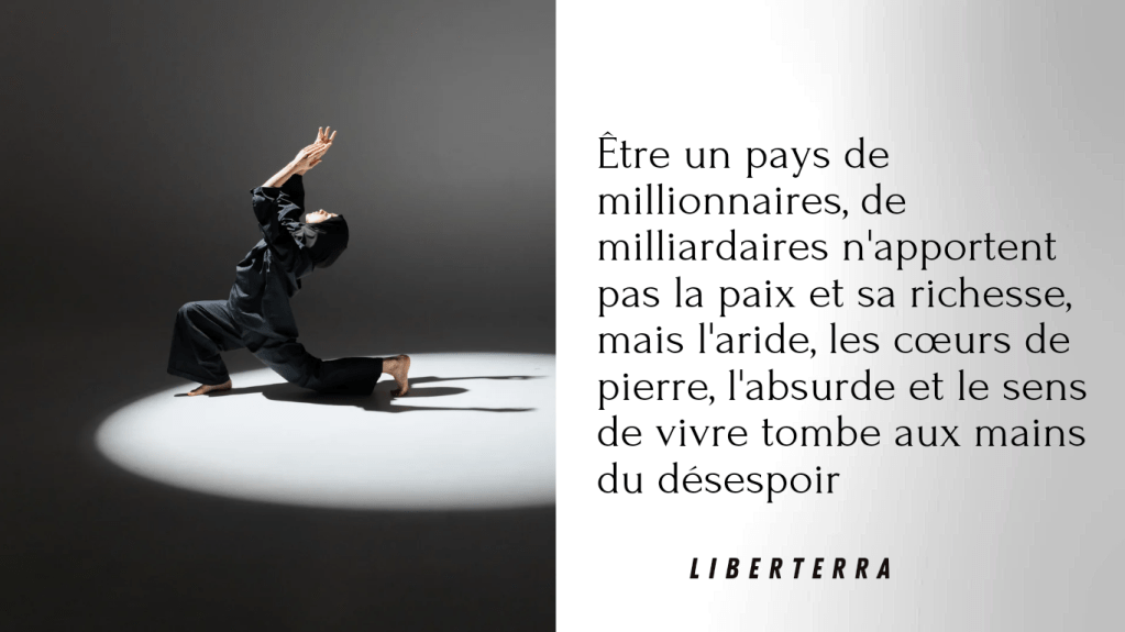 Ainsi qu’il est en France, être un pays de millionnaires, de milliardaires n’apportent pas la paix et sa richesse, mais l’aride, les cœurs de pierre, l’absurde et le sens de vivre tombe aux mains du désespoir.