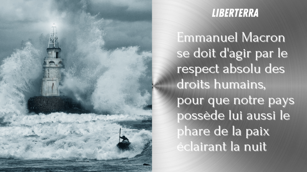 Emmanuel Macron se doit d’agir pour le respect absolu des droits humains, pour que notre pays possède lui aussi le phare de la paix éclairant la nuit. La France ne pourra pas être un pays en paix par des politiques glissant vers l’autoritarisme, des politiques oubliant les femmes victimes de violences.