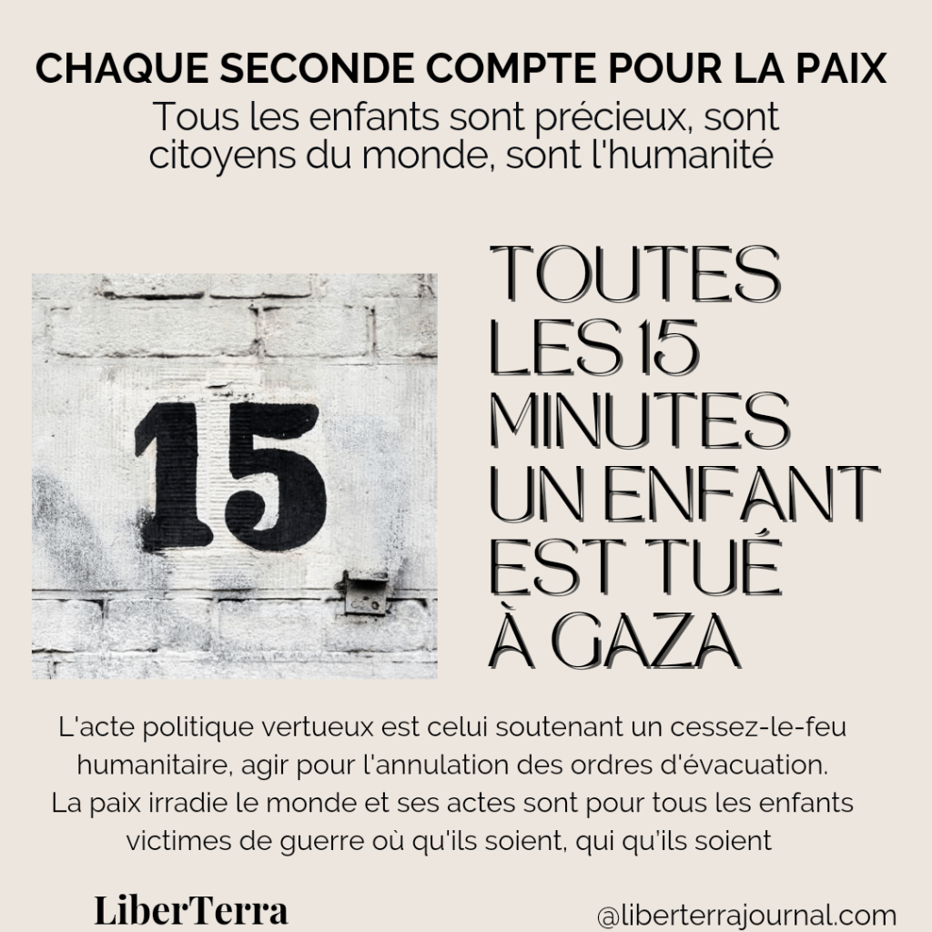 Ce que subisse des enfants à gaza fait trembler notre monde, et ne laissera pas intact notre futur. En seulement quinze jours de guerre entre Israël et le Hamas, le déséquilibre civilisationnel s’est profondément aggravé. Et, tout prouve combien notre humanité est en communion, quand au Soudan des dizaines de milliers d’enfants risquent de mourir avant la fin de l’année.
