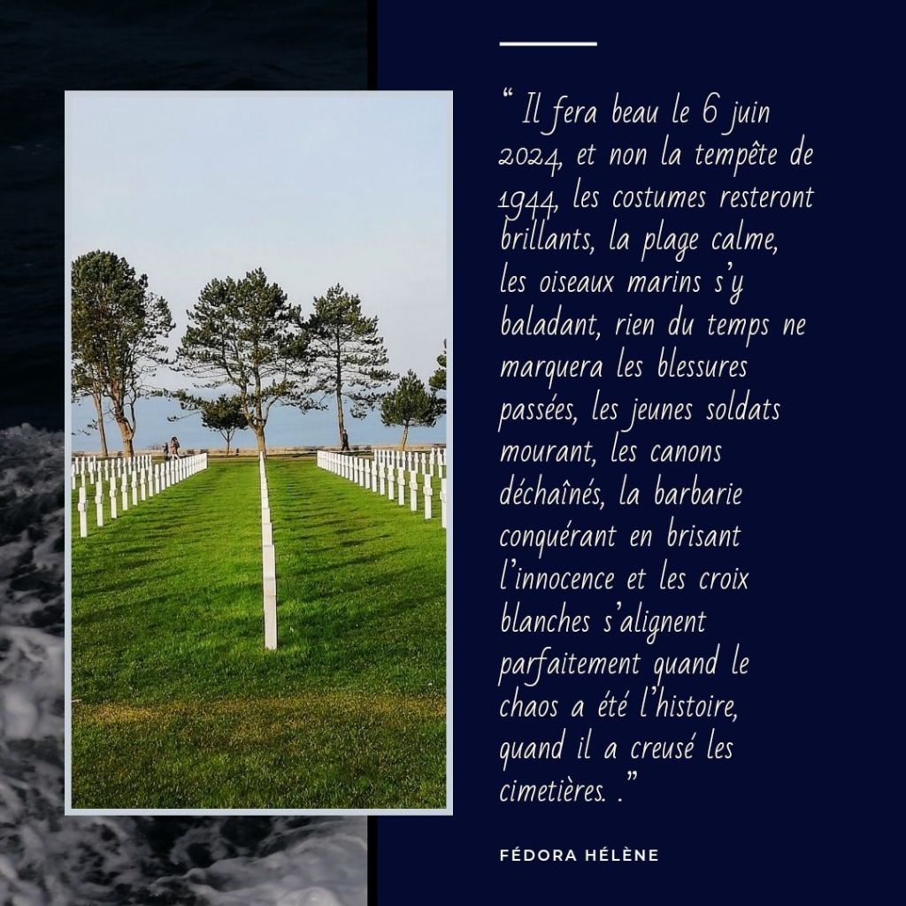Normandie, et loin de toi, loin du soldat, de son âme en paix, des résistants aux tombes fleuries, le monde au cœur d’un bouleversement souffre à nouveau. L’Ukraine, la pauvreté, la détresse de la guerre, les enfants au froid de l’hiver, et à quelques pas, les enfants du Congo pleurent, les enfants de Palestine tremblent, les génocides peuplent l’histoire, qu’un jour, nous voudrons l’oublier, ne plus porter le fardeau que les puissants ont fait de la naissance de l’humanité.