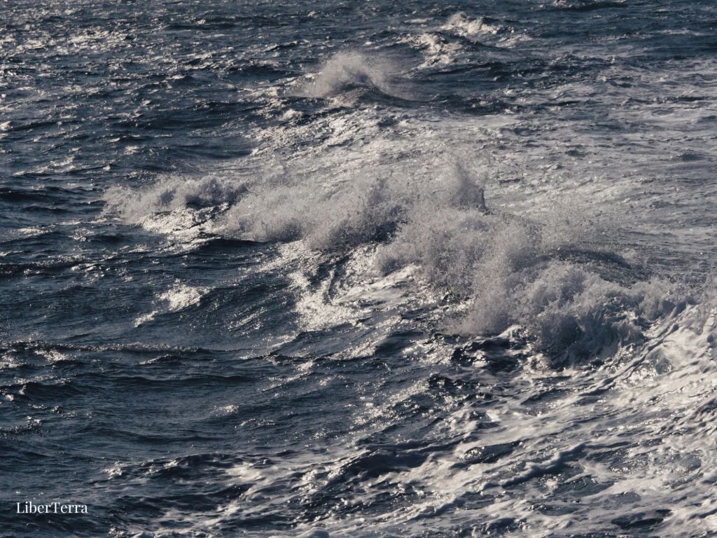 Mais, l’océan dans son immensité, les nuances aux reflets du ciel, son monde si puissant, cœur de la vie sur Terre, ces vagues calmes, où en rage, nous ne prenons pas le large, ne voyons pas sa détresse, le silence, les mammifères marins se taisant, ne communiquant plus à cause de la pollution sonore provoquée par les activités des porte-conteneurs, des chalutiers, l’économie marchande délaissant la connaissance pour le profit.