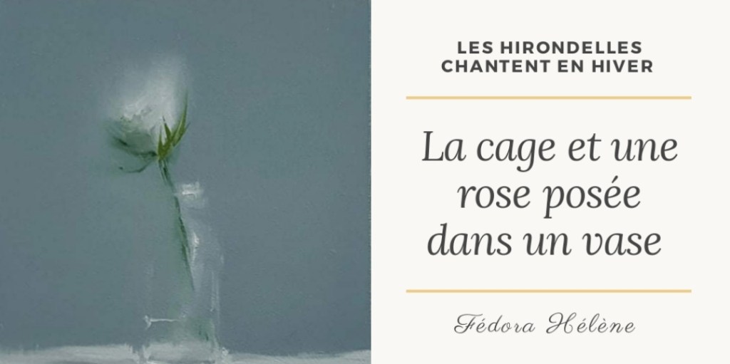 La cage . La cage et une rose posée dans un vase. Il met un peu d’eau . Juste un peu, un baiser, » Ma chérie, tu es la femme de ma vie. »