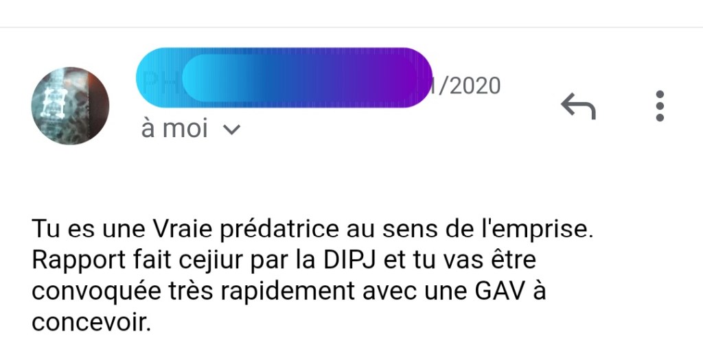 Les violences telles que martyriser une femme enceinte, lui imposer la peur de perdre son enfant, ne seront pas oubliées. La force de témoigner enceinte, alitée sur ordre médical et l’indifférence du système, quintessence de la culture des maltraitances, de la perversité narcissique, des injustices en France, loin d’être le pays des droits de l’homme, mais celui du patriarcat et de son obscurantisme, du culte du viol, de politiques aux défaillances des corruptions.