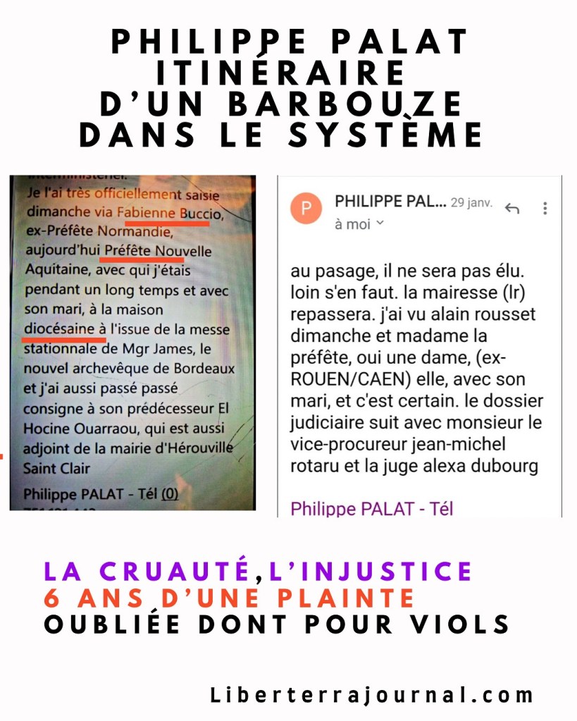 Au niveau de prédation de Philippe Palat dans les milieux politiques, il ne risque pas d’être face à ses responsabilités, actes de violence inouïe. Le système et le monde politique lié au monde judiciaire, tout est dit.
