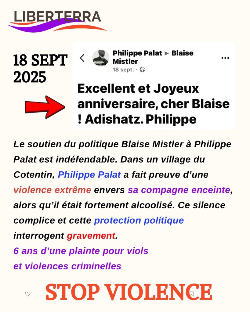Philippe Palat, l’ami de politiques, dont de Blaise Mistler, celui voisin du village dans le Contentin (Manche), où le tyran a été d’une extrême violence conjugale, terrorisante, terrifiante, contre une femme enceinte et lui infligeant un viol.