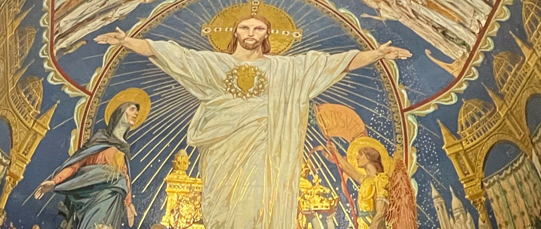 Le Christ transcende la beauté de l’art. Il y fait régner la puissance par la lumière. Il y dépose la paix, la justice, l’infini. Tout est sublimé. La souffrance est dépassée, magnifiquement. Elle disparaît. Seule la Vie triomphe.