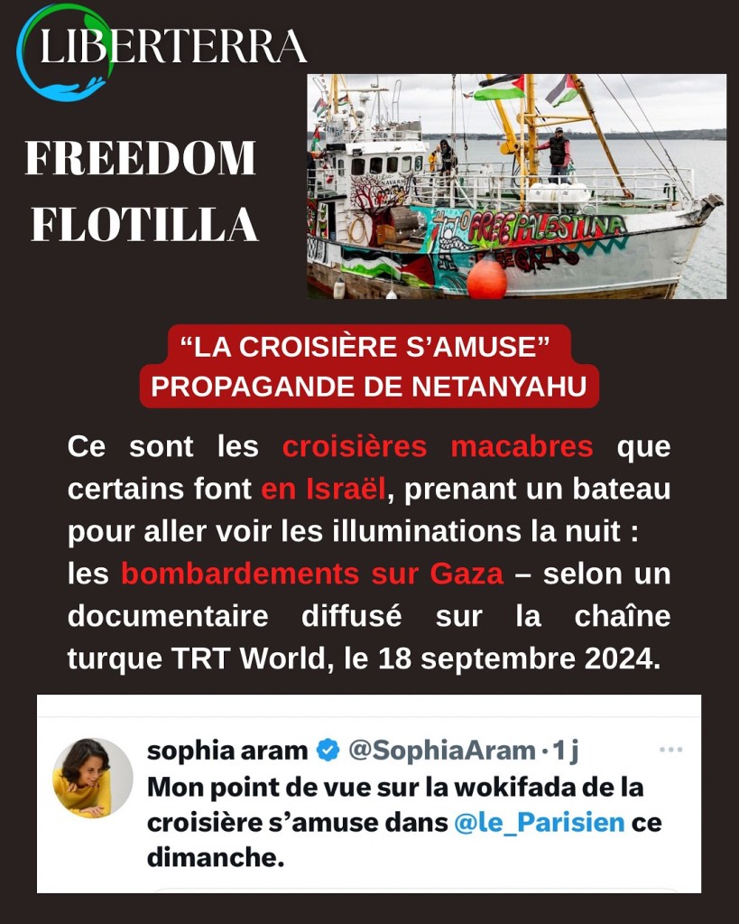 La dominante d’extrême droite en France qualifie la Flottille de la Liberté de « croisière s’amuse », répétant stupidement la propagande des autorités israéliennes.