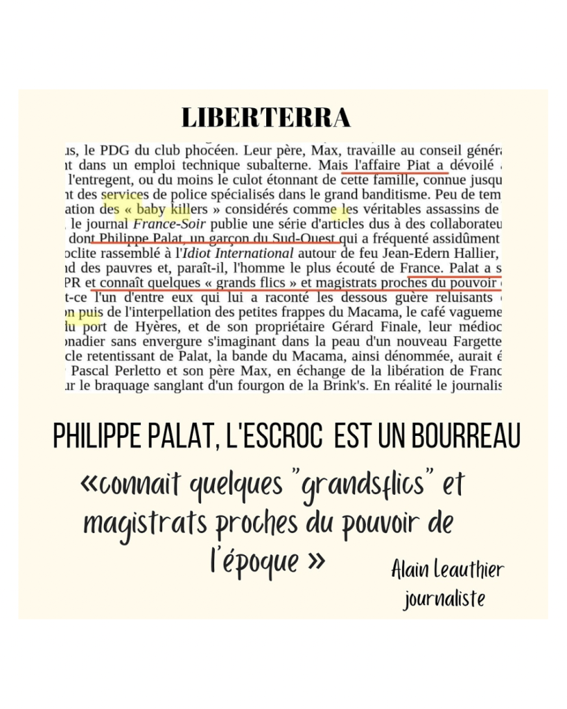 Philippe Palat, en imposteur, se présente un jour comme journaliste, le lendemain comme juriste ou avocat, selon ses intérêts. Le tout, dans une impunité totale. La France : ce pays où les prédateurs sont rois.