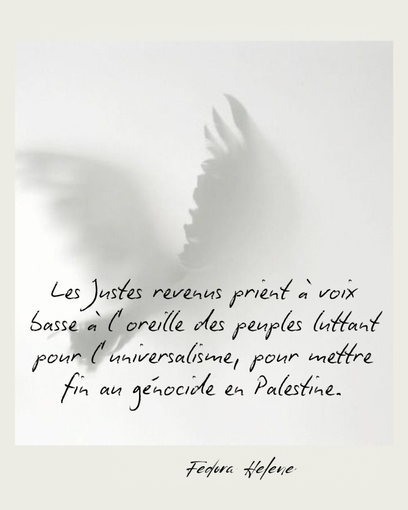 Les Justes revenus prient à voix basse à l’oreille des peuples luttant pour l’universalisme, pour mettre fin au génocide en Palestine.