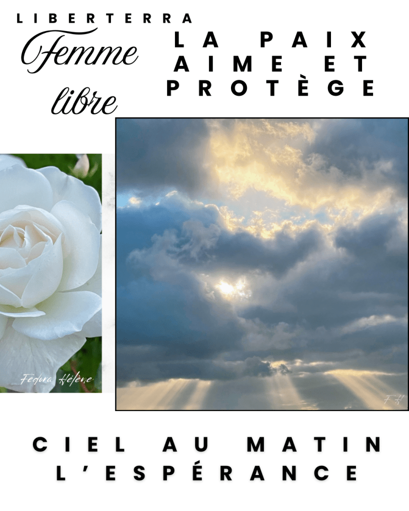 La paix, souffle survivant, levant la brume en blancheur du matin, révèle les yeux bleus du jour.