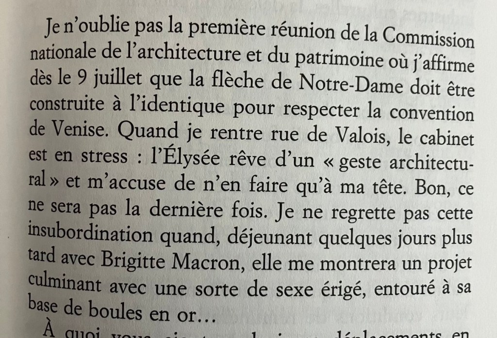 Brigitte, amie de Mimi Marchand et du riche Bernard Arnault, a brillé par son imagination pour la flèche de Notre-Dame. La ministre de la Culture d’alors a publié à ce propos, avant que Rachida Dati vienne se loger dans un Élysée s’effondrant, la chute d’un pays.