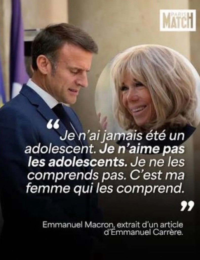 Une daronne de 40 ans qui a jugé qu’un adolescent de 15 ou 16 ans, et plus jeune que son propre fils, devait devenir « l’homme de sa vie ». Et la seule référence d’Emmanuel Macron était alors son enfance.