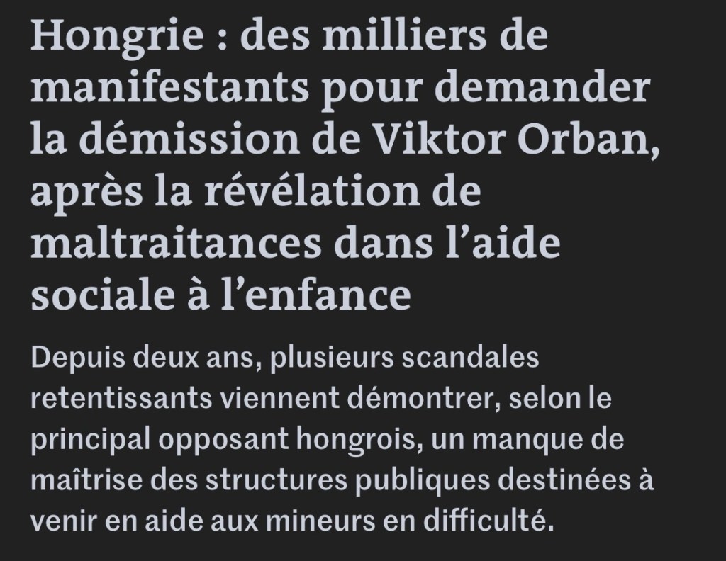 Des milliers de manifestants en Hongrie ont récemment exigé la démission de Viktor Orbán, à la suite de révélations de maltraitance au sein de l’Aide sociale à l’enfance.