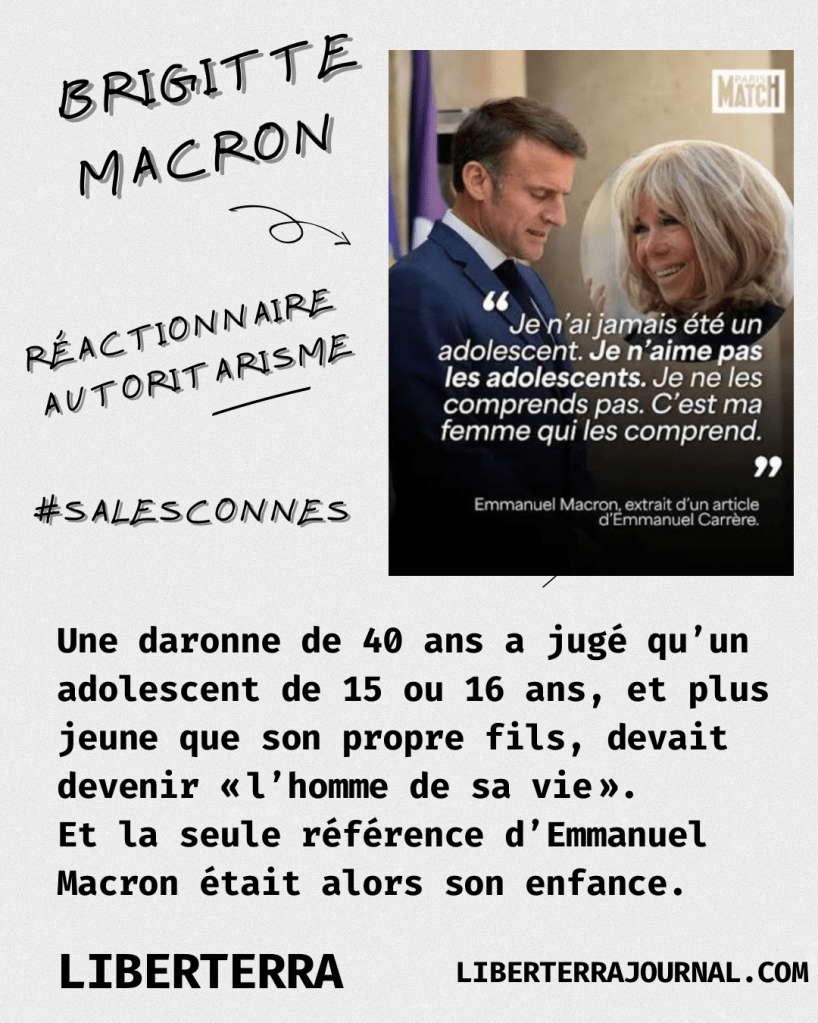 Ce sont ceux et celles flattés par l’argent. Ces boomers à l’image de Brigitte Macron, héritiers et rentiers, haïssant la jeunesse et lui interdisant de construire sa société.
