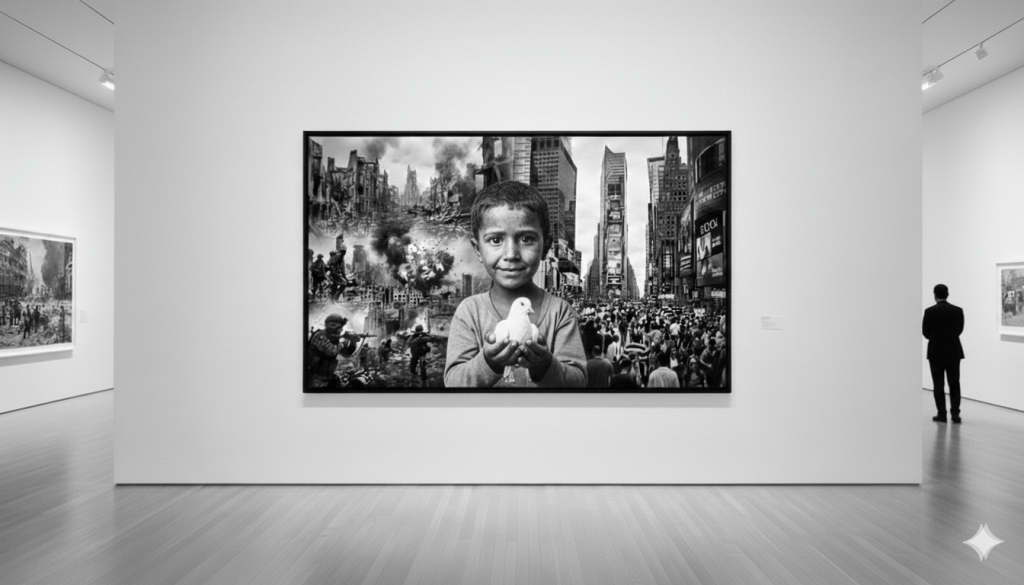 Le XXIᵉ siècle abandonne la paix au nom du pouvoir, de l’orgueil, de l’argent, laissant la politique aux mains des puissants et nourrissant l’illusion d’une civilisation commerciale forgée au fer des bombardements et à l’horreur du monde de la finance.