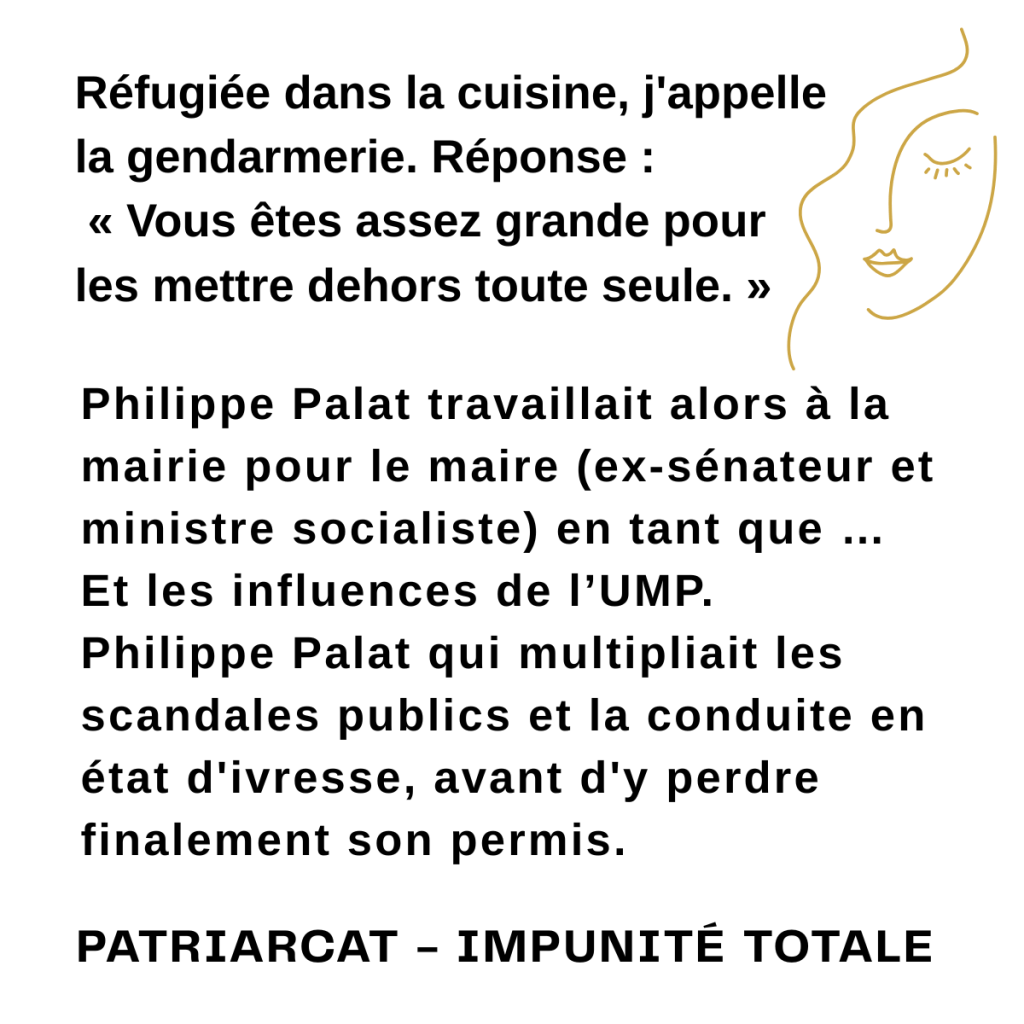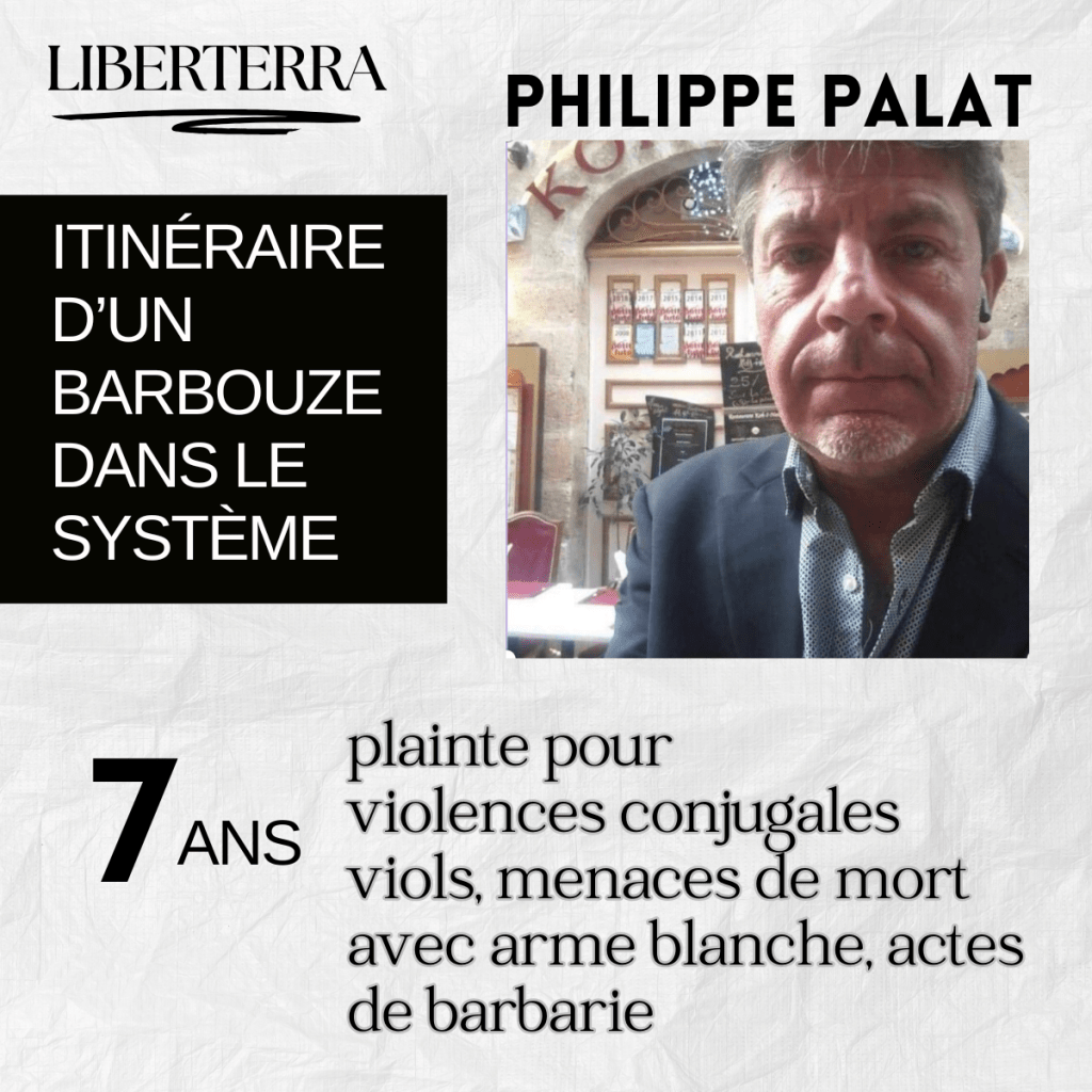 Il a été arrêté par un homme exceptionnel, Arnaud Beltrame. Philippe Palat a été condamné pour violences conjugales suite à cette arrestation. Une condamnation dont il se moque éperdument. Il redoubla de violences, de manipulations, continua ses menaces de mort, notamment avec un couteau. Témoigner n’a servi à rien. Un grain de sable dans un univers d’une indicible indifférence.