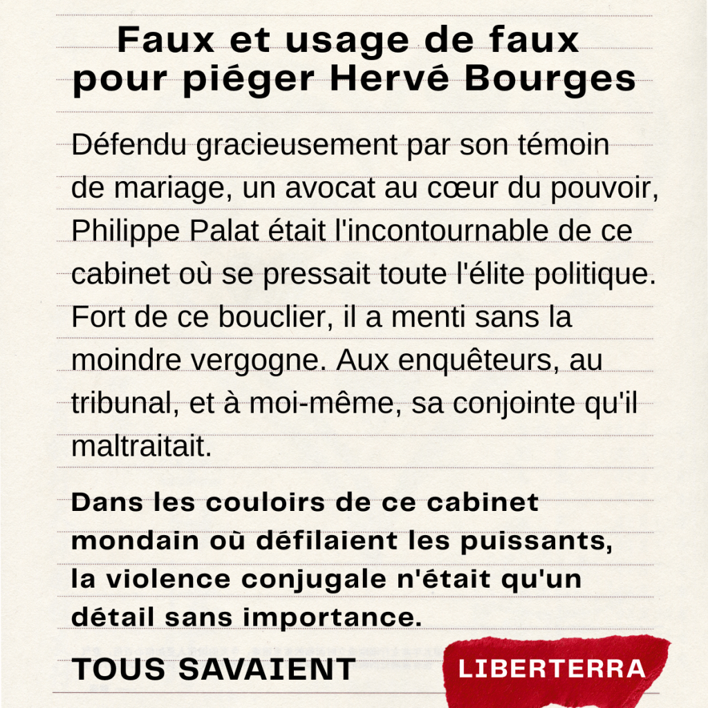 Diffuser son mensonge, un faux document qu’il avait lui-même confectionné, semer le doute et la rumeur sur Hervé Bourges : c’était bien plus profitable pour les coulisses du pouvoir. Le lecteur n’y est plus un citoyen, il sert de public manipulé à qui l’on jette en pâture une pseudo-information. Les affaires Palat ne servaient qu’aux manœuvres des réseaux d’influence.
